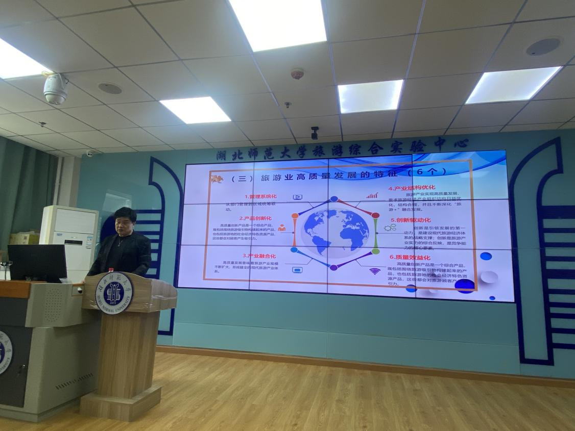 5月26日上午,武汉商学院旅游管理学院院长薛兵旺教授应邀走进历史文化学院旅游综合实训室,开展题为“文旅融合背景下AI赋能文旅产业大发展”的专题讲座。本次活动由历史文化学院院长蔡明伦教授主持,旅游专业全体师生齐聚一堂,共赴这场知识盛宴。