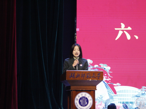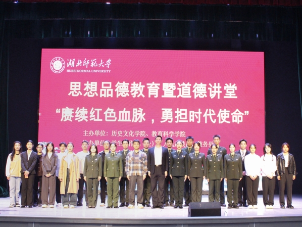 为激发新生的爱国情怀,立报国强国大志向,做挺膺担当奋斗者。2025年10月24日晚上,由历史文化学院、教育科学学院主办,学生工作部(处)、人民武装部、教务处、校友工作处、工会协办的湖北师范大学思想品德教育暨道德讲堂活动在湖师大礼堂举行。