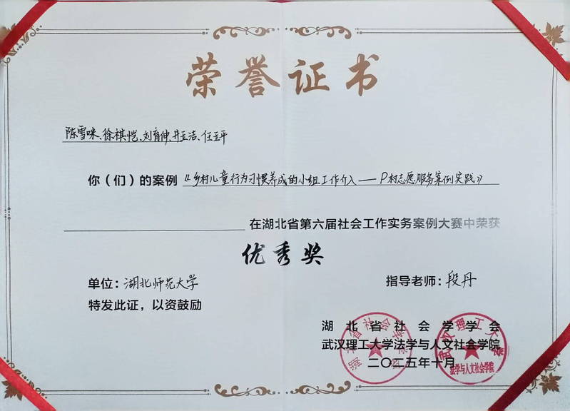 喜报!我院同学在湖北省社工实务案例大赛中荣获优秀奖!